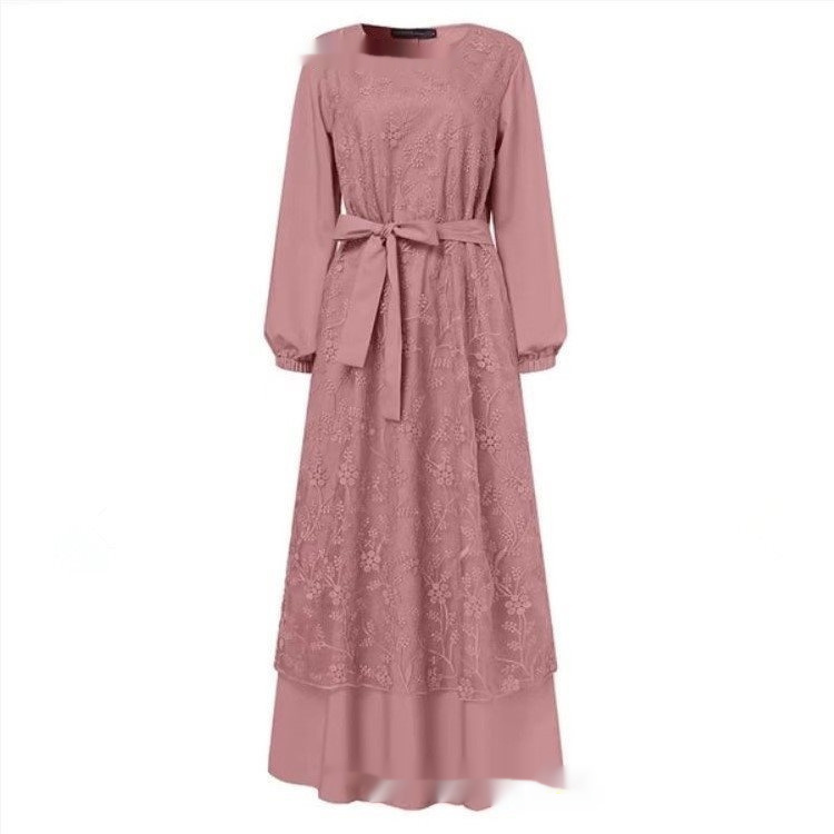 Be the first to review “Muslim Round Neck Lace Floral Dress”